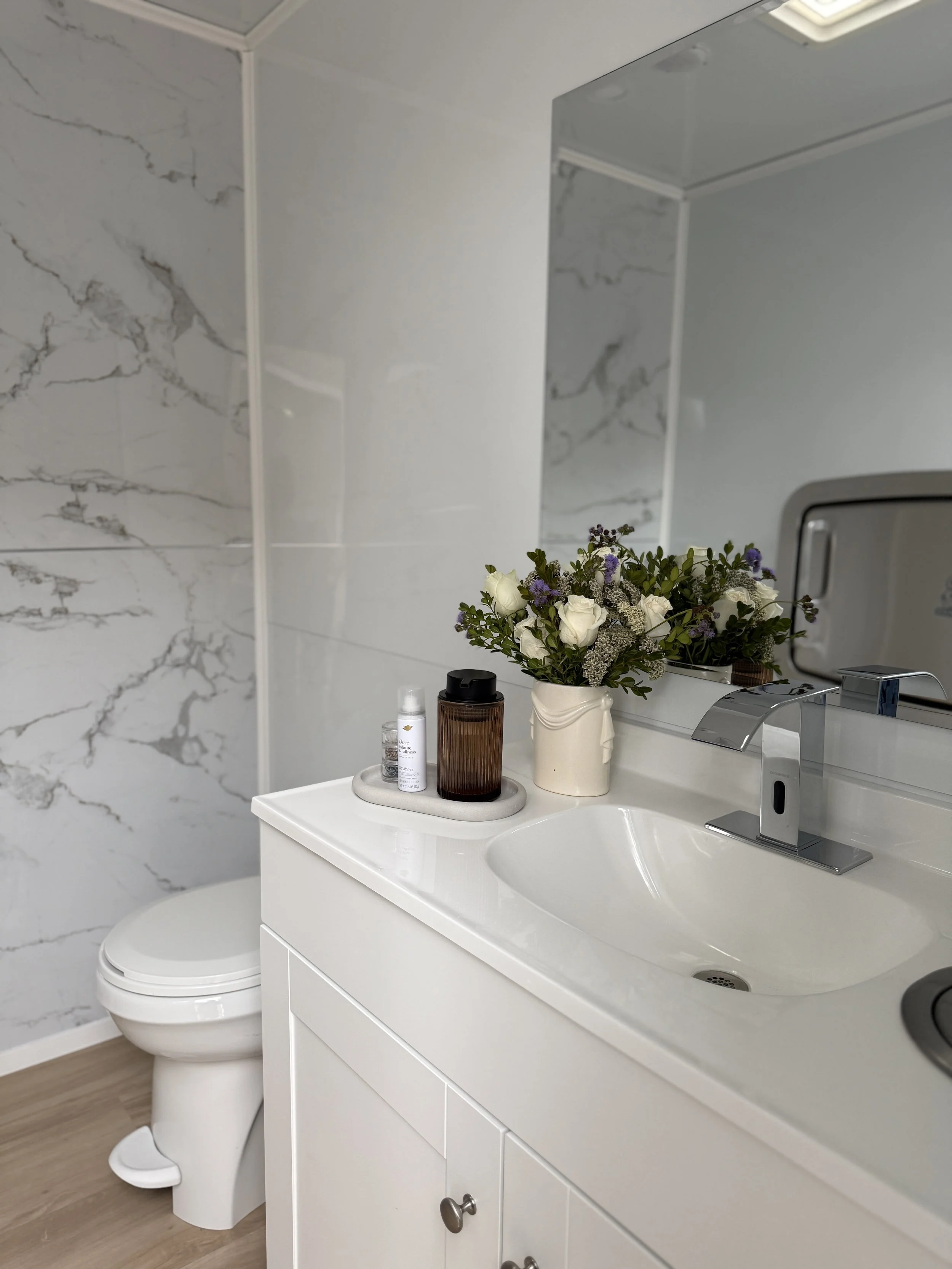 Ivory Restroom Trailers are designed to elevate your event experience. Each trailer features: